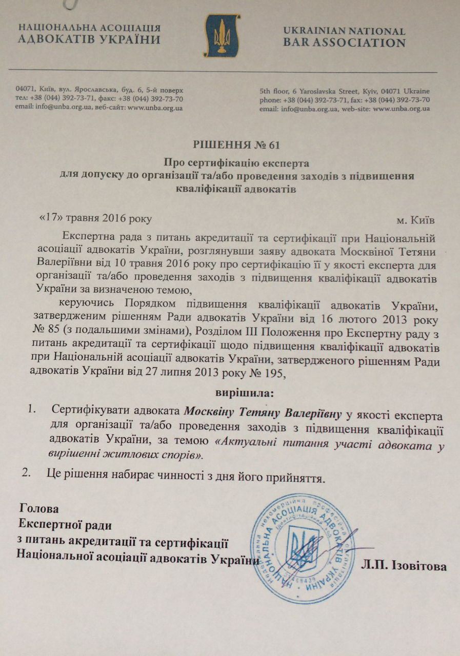 "Я являюсь давним и постоянным клиентом адвоката Татьяны Москвиной. У нас с ней за плечами не одна победа. И, кстати, ни одного проигрыша. Татьяну знаю давно. Первый раз у нас был жилищный спор по дому, который мы успешно выиграли в апелляции. Также был интересный процесс - мы выиграли спор у ПриватБанка, что на тот момент было практически невозможно, но благодаря креативности и нестандартному подходу Татьяны мы выиграли этот суд. Поэтому, если у вас сложная проблема и вам пророчат слабую судебную перспективу, обращайтесь к Татьяне Москвиной - она вам поможет"